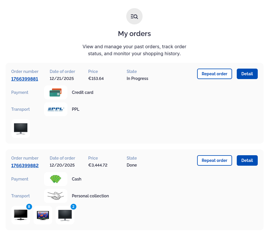 Order lists now display product thumbnails, making purchased items easier to recognize at a glance (#4213).